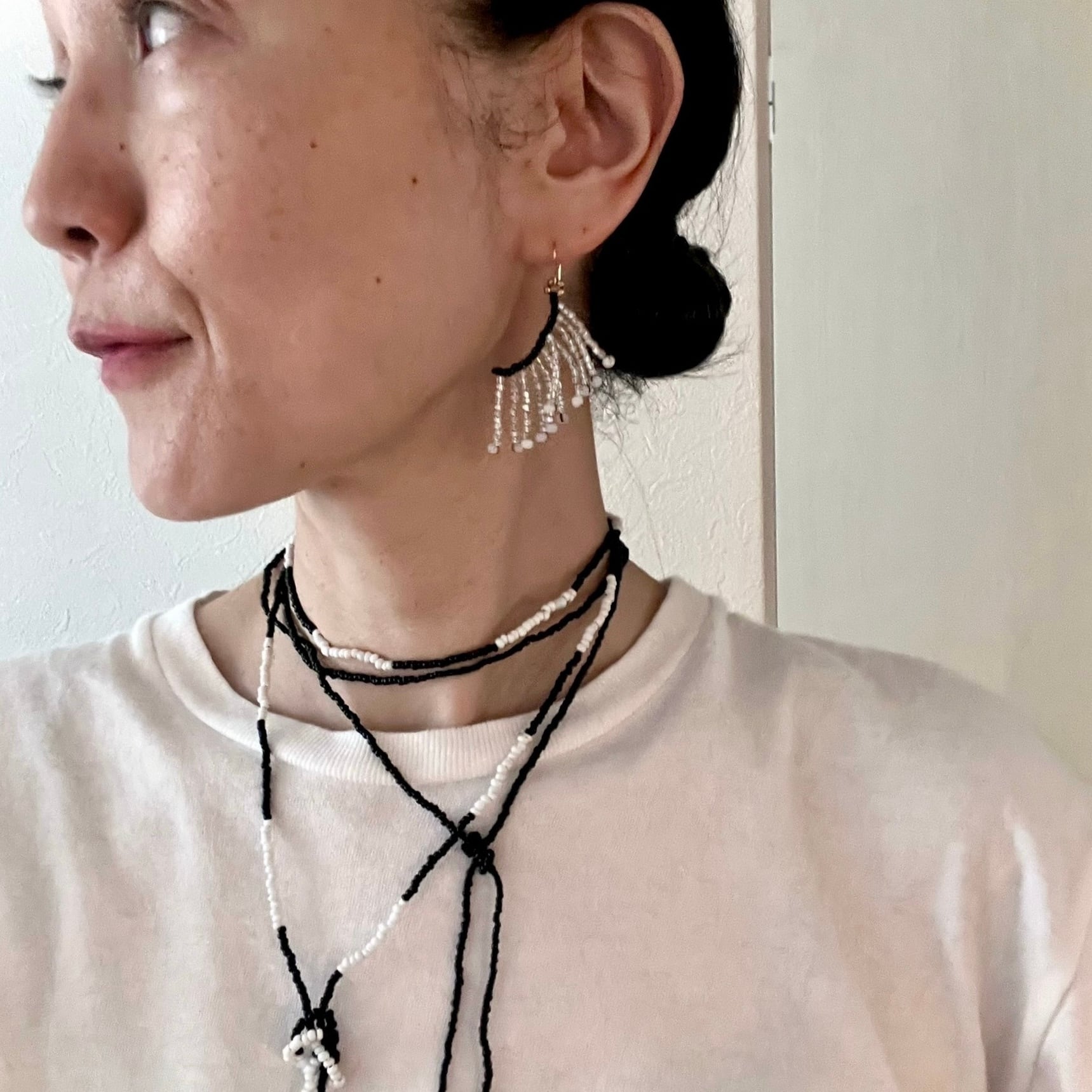 シルバーのビーズは光を受けてキラキラと光り表情を変えます。