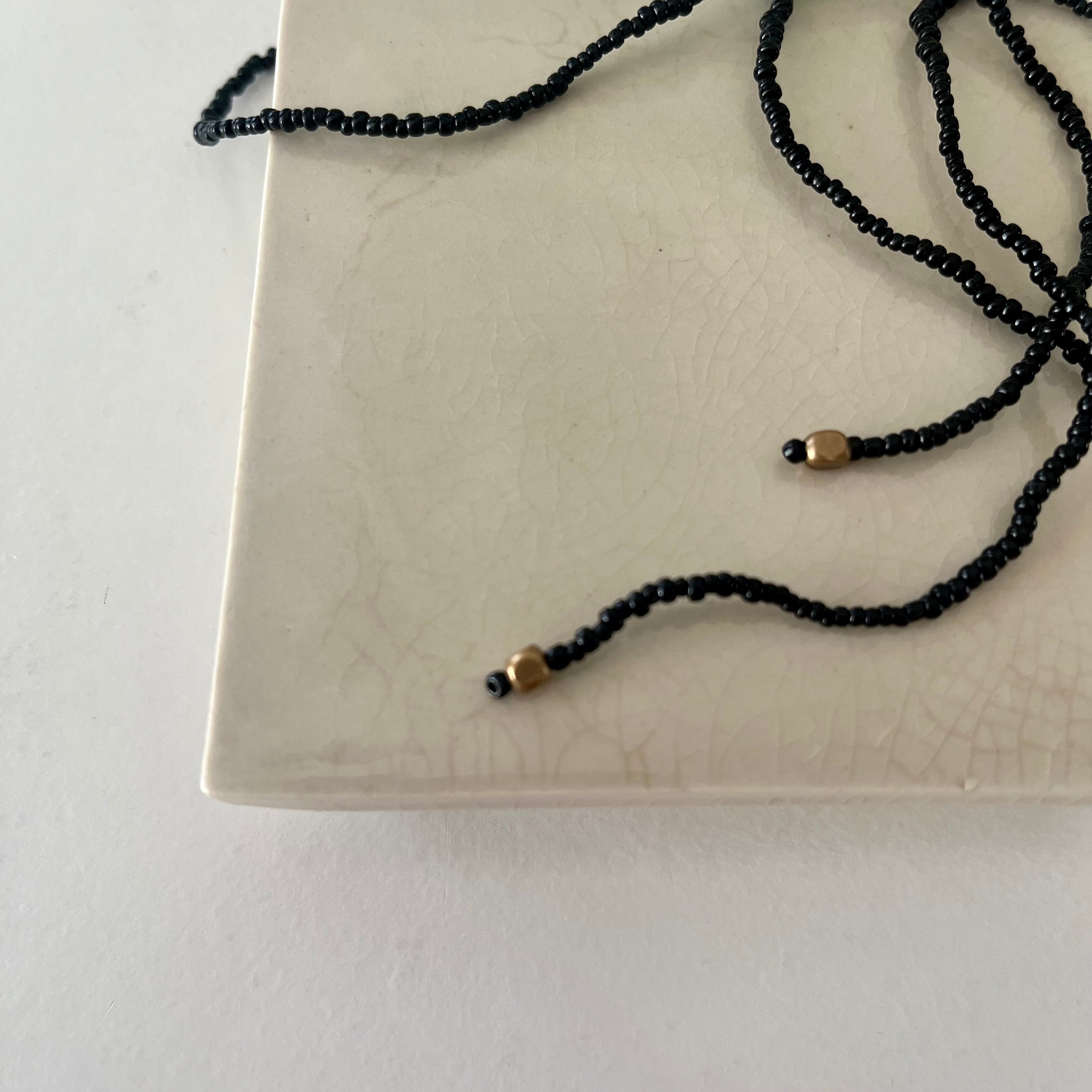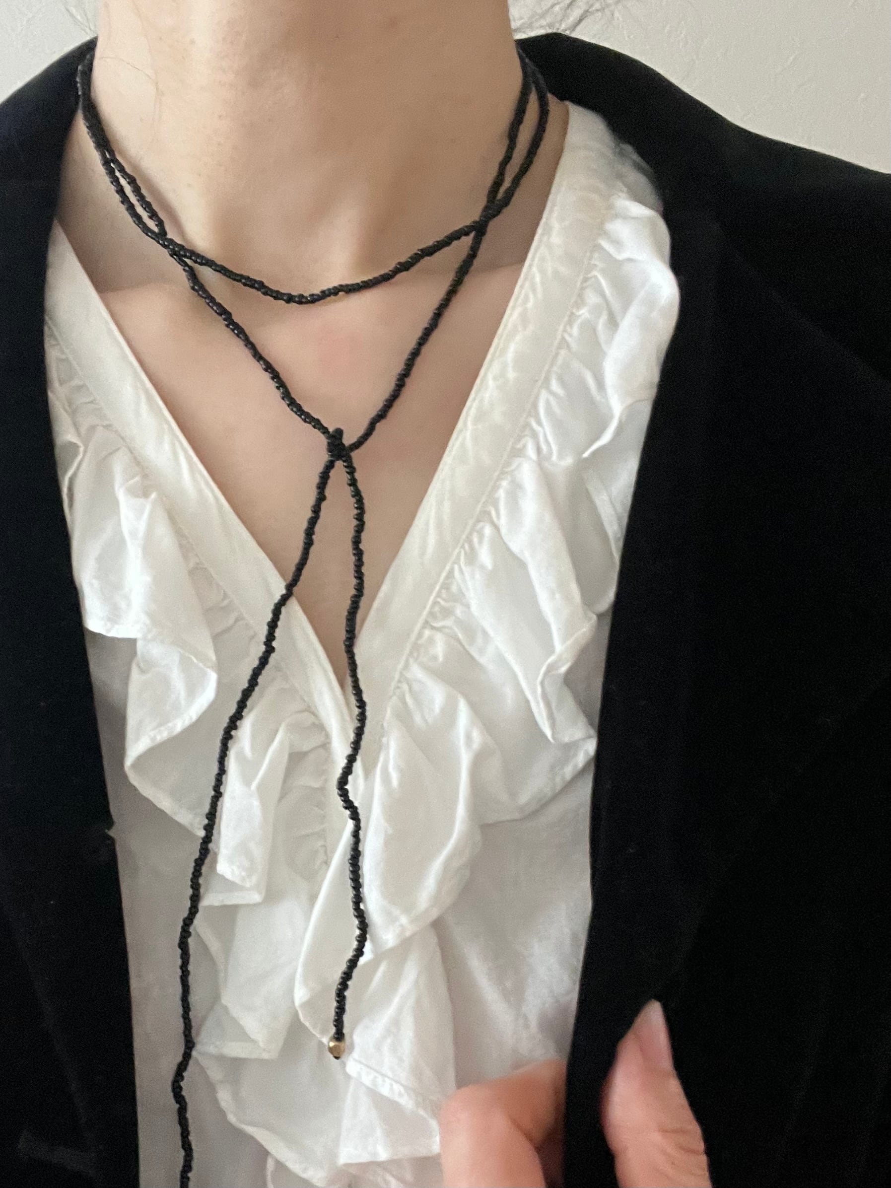 紐状のシンプルな黒ビーズのネックレス。