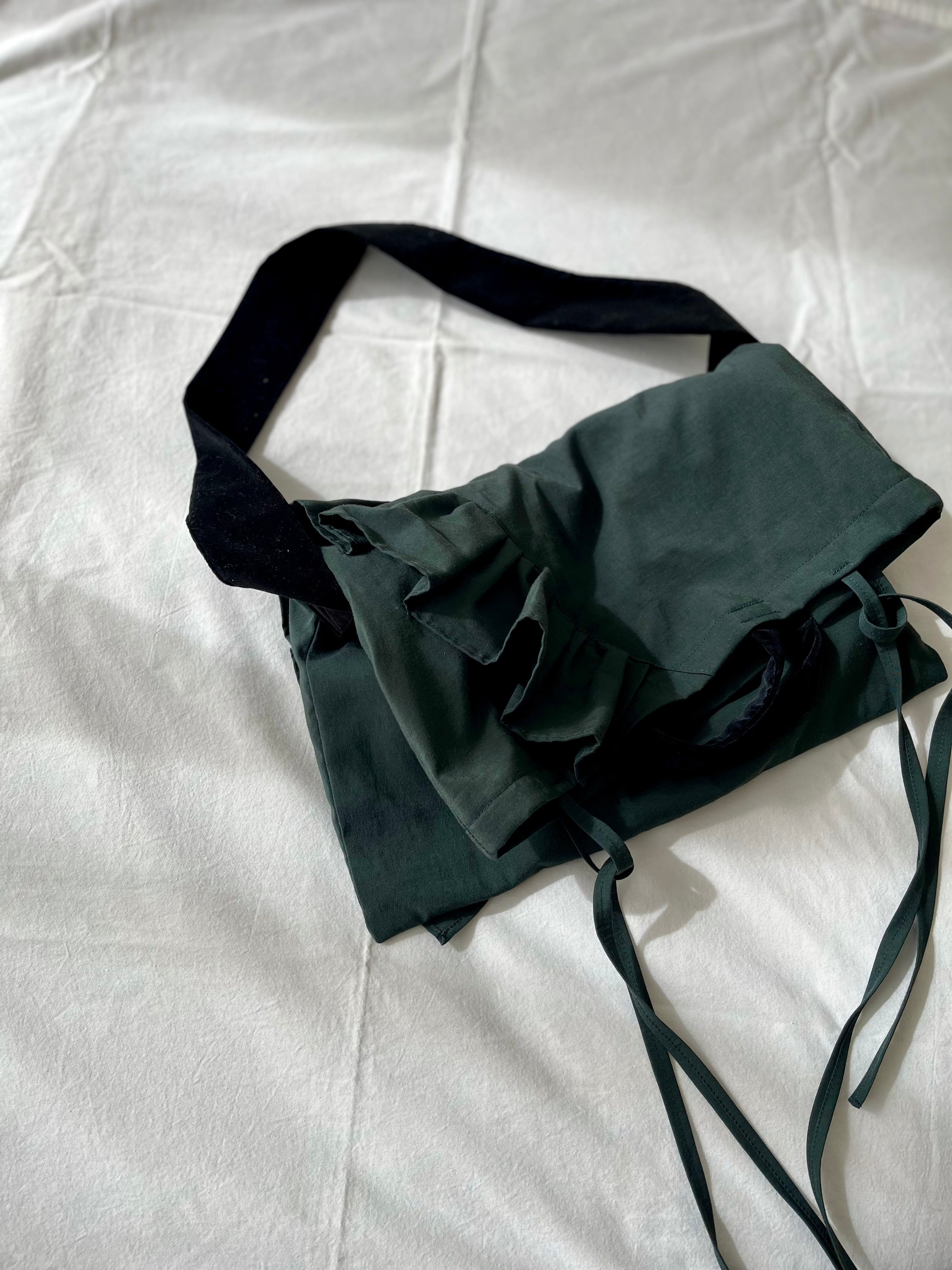ミステリアスな深い青緑の生地は織りが緻密で光沢がありとてもシック。