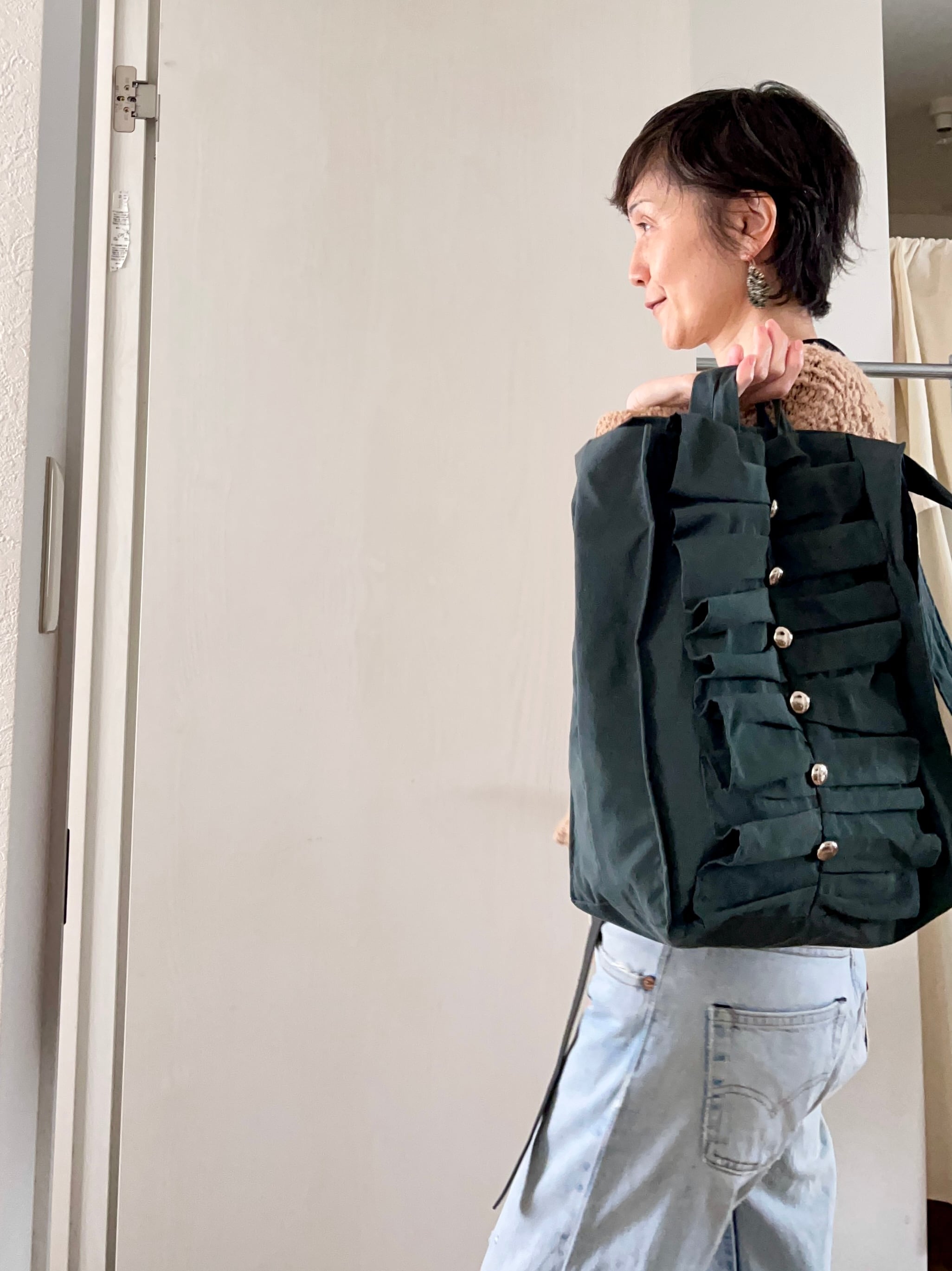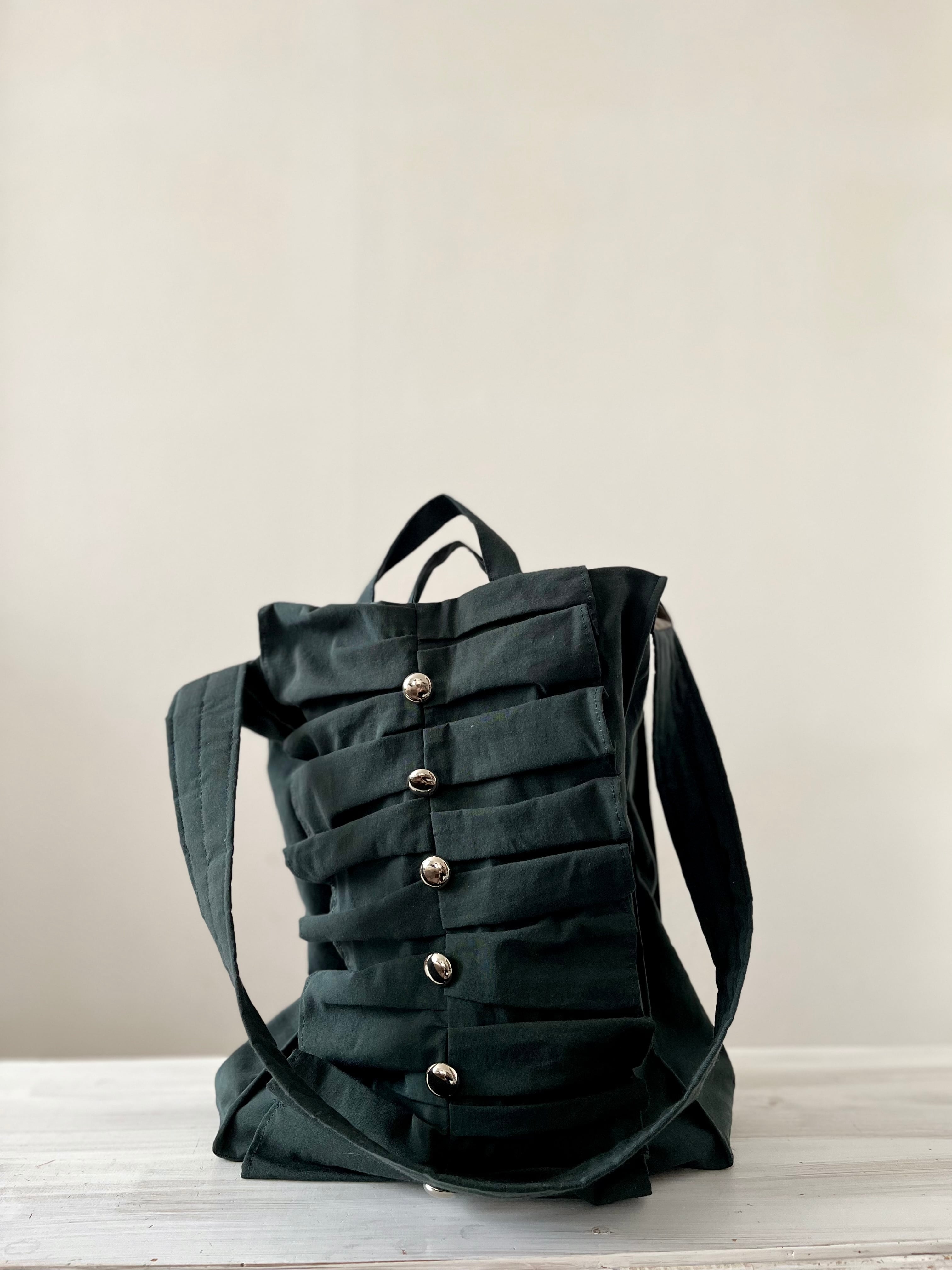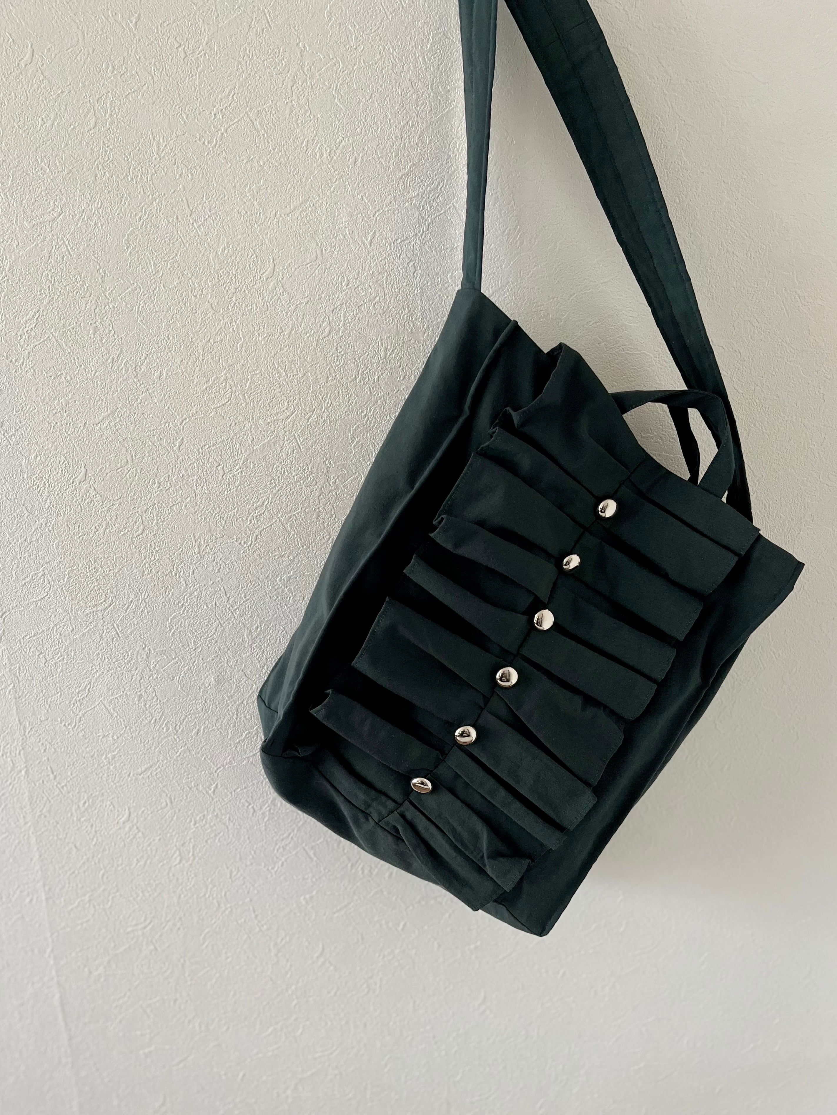 2way frill shopping bag # silver button viridian