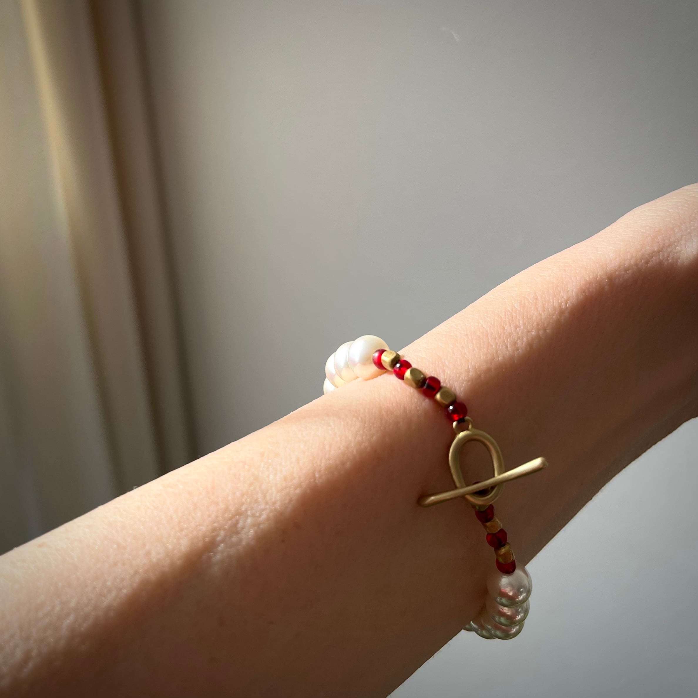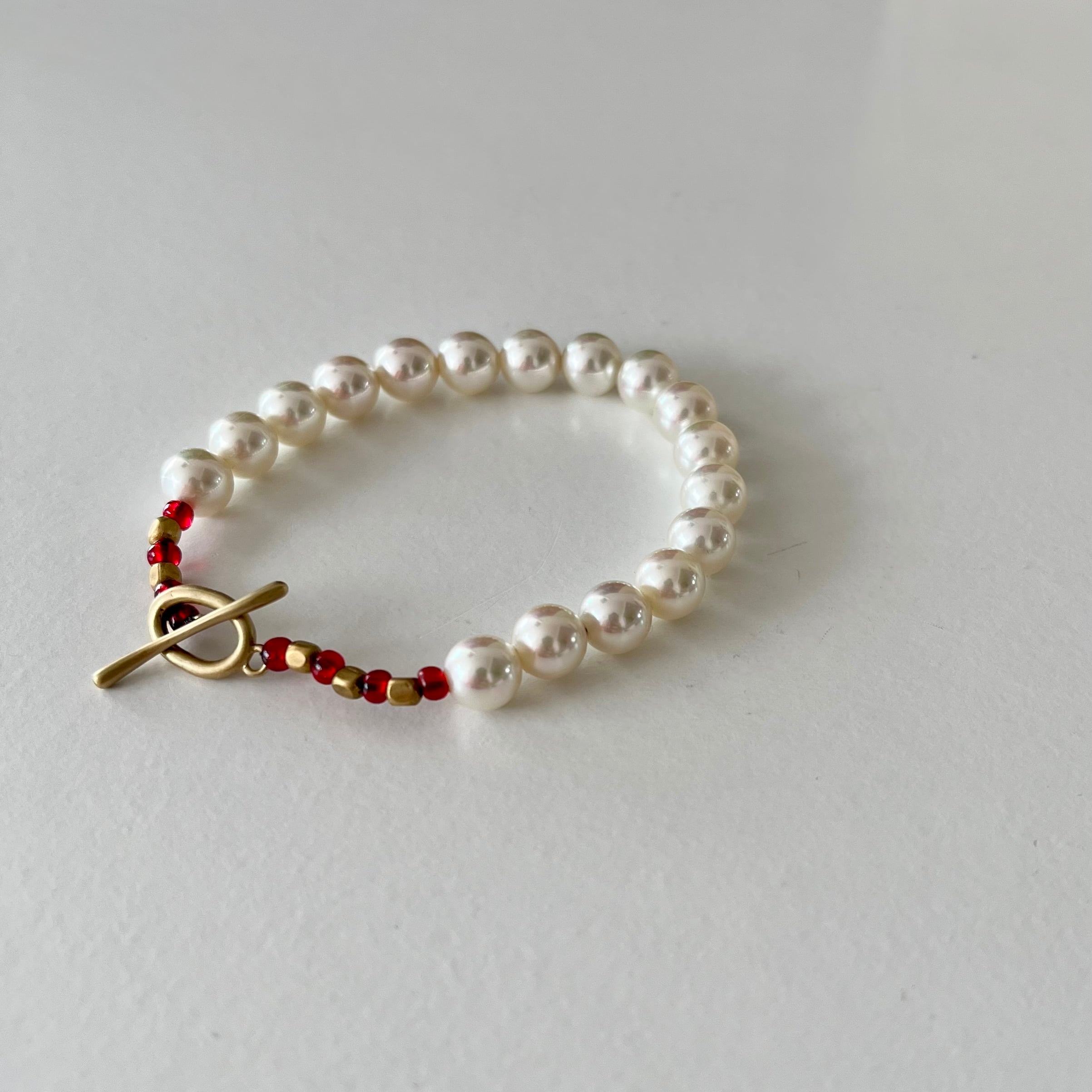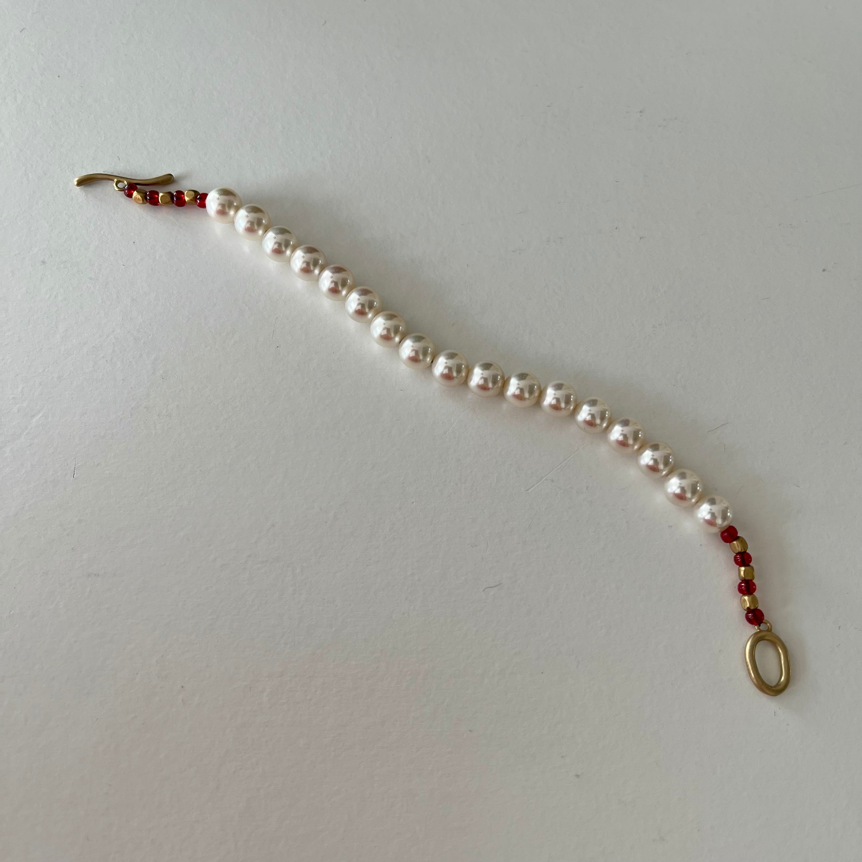 硬質な輝きが美しいジャパンヴィンテージのシェルパールを使用したブレスレットです。
