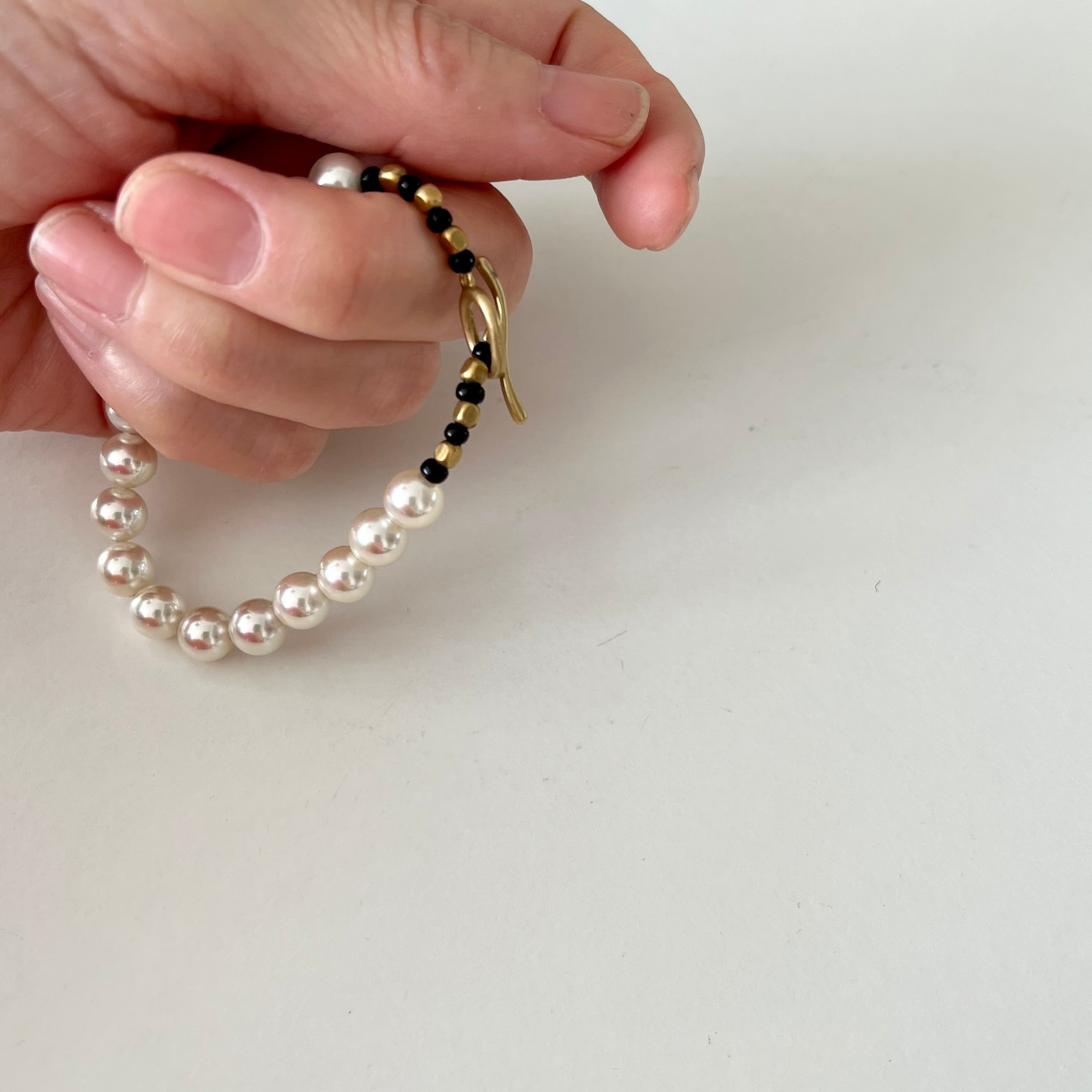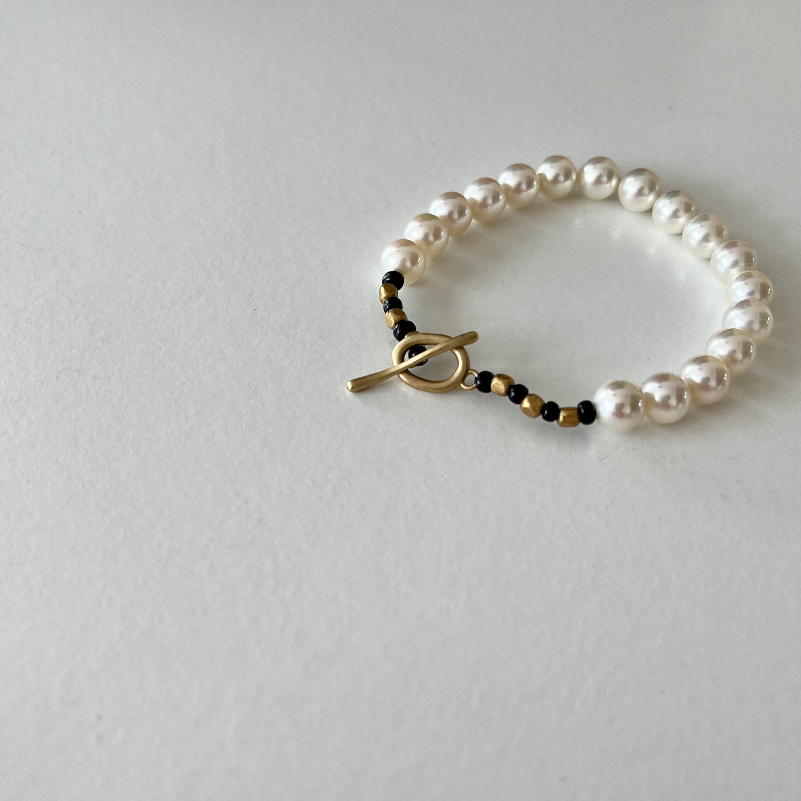 硬質な輝きが美しいジャパンヴィンテージのシェルパールを使用したブレスレットです。
