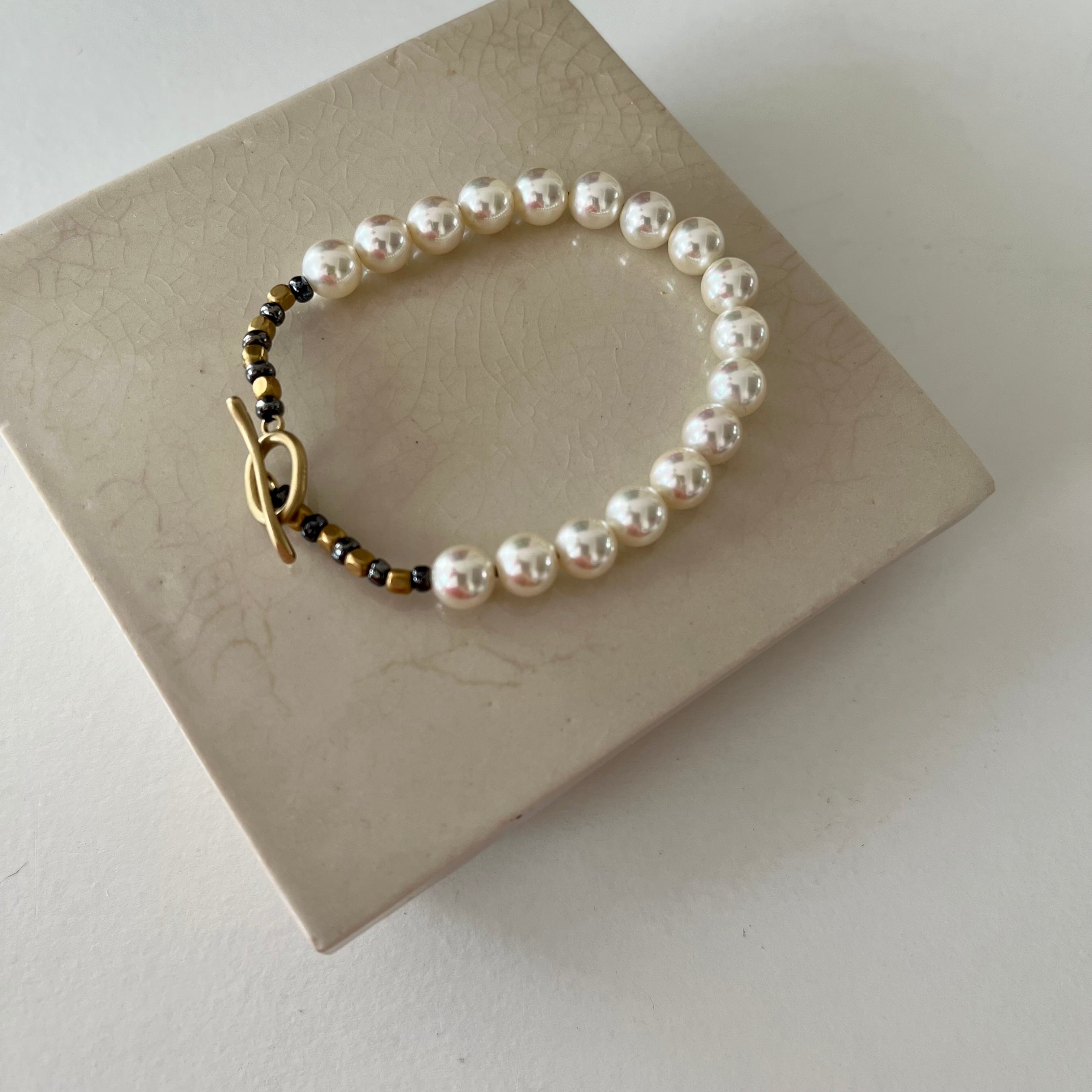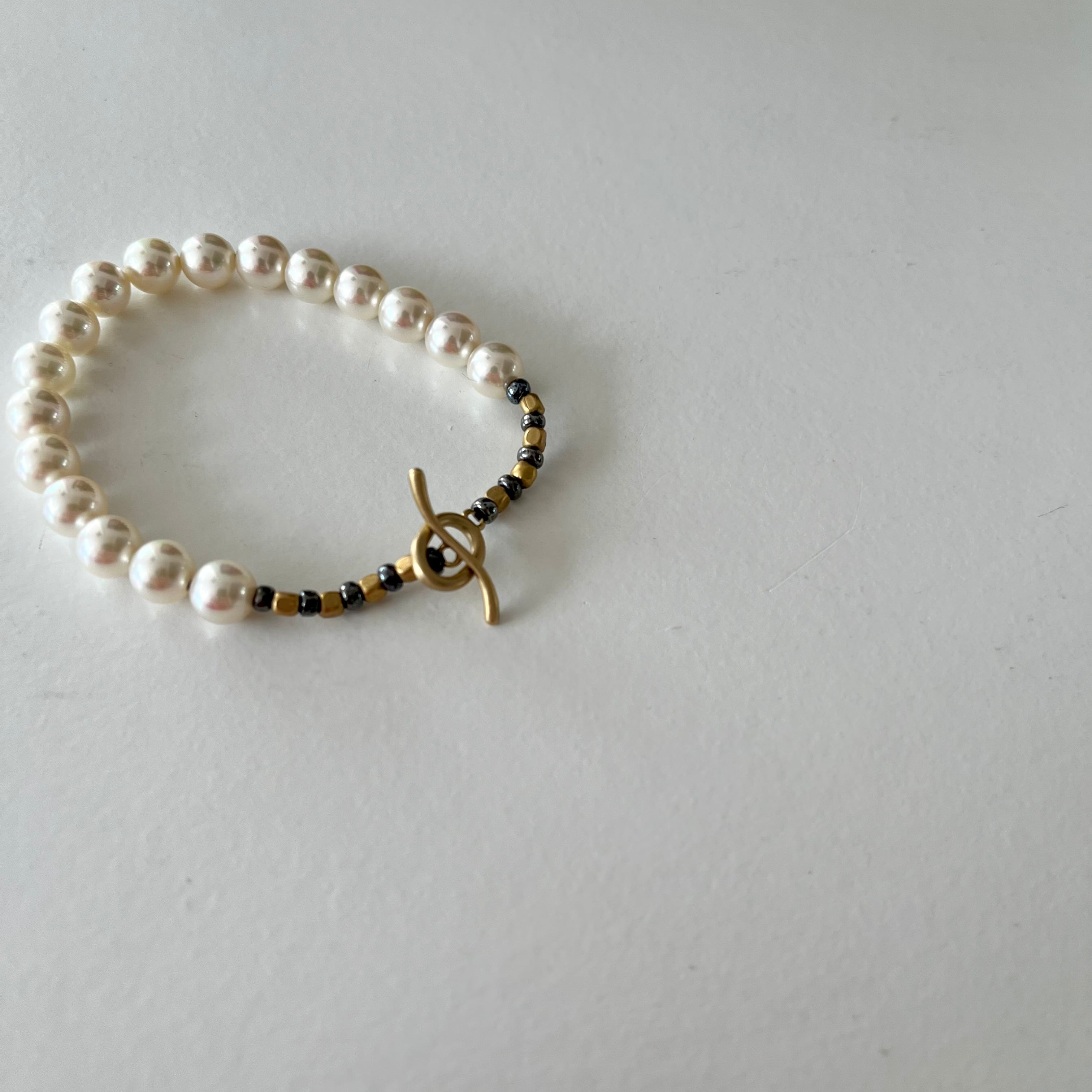 硬質な輝きが美しいジャパンヴィンテージのシェルパールを使用したブレスレットです。