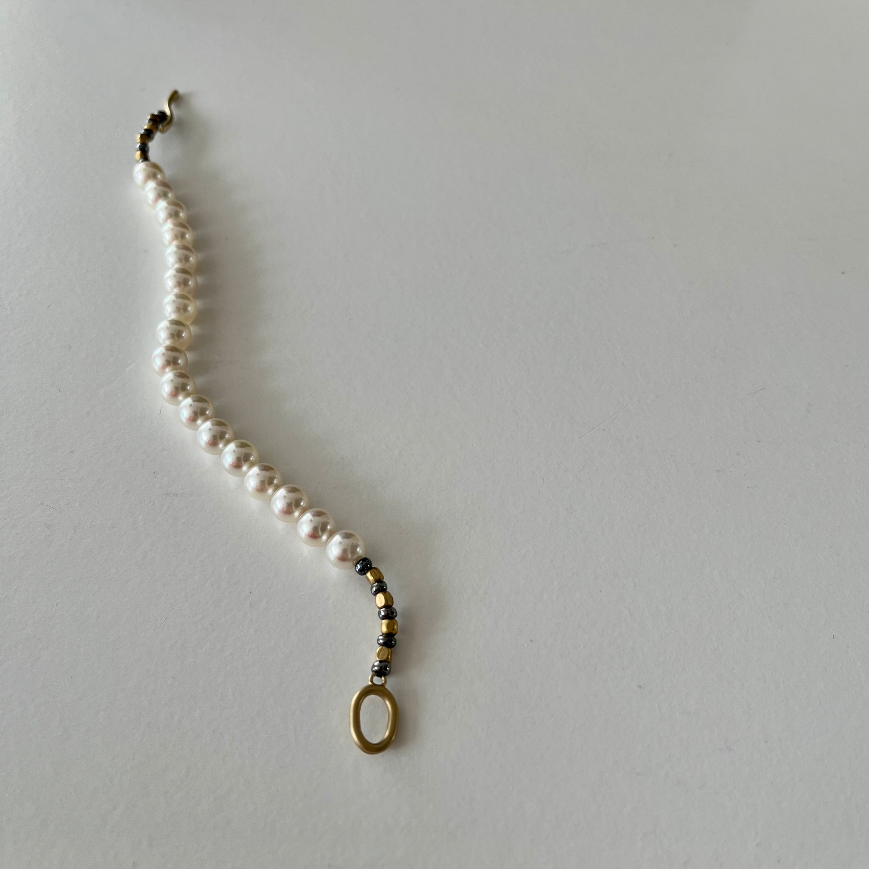 shell pearl bracelet # grey × brass