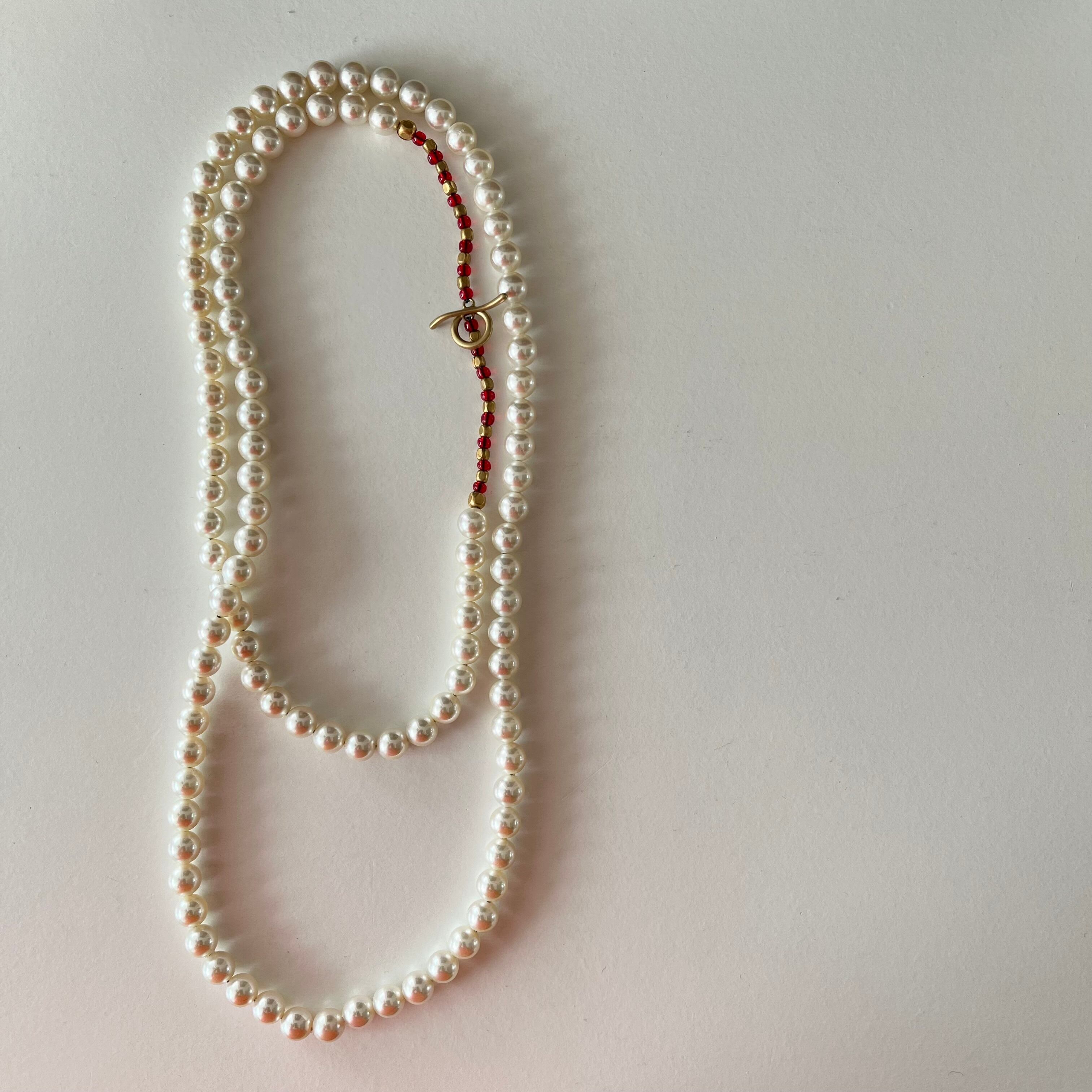 shell pearl necklace #red × brass