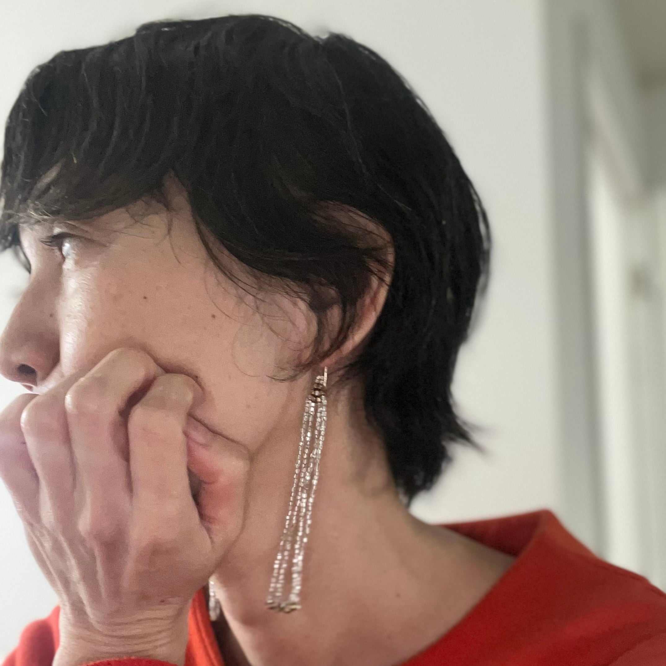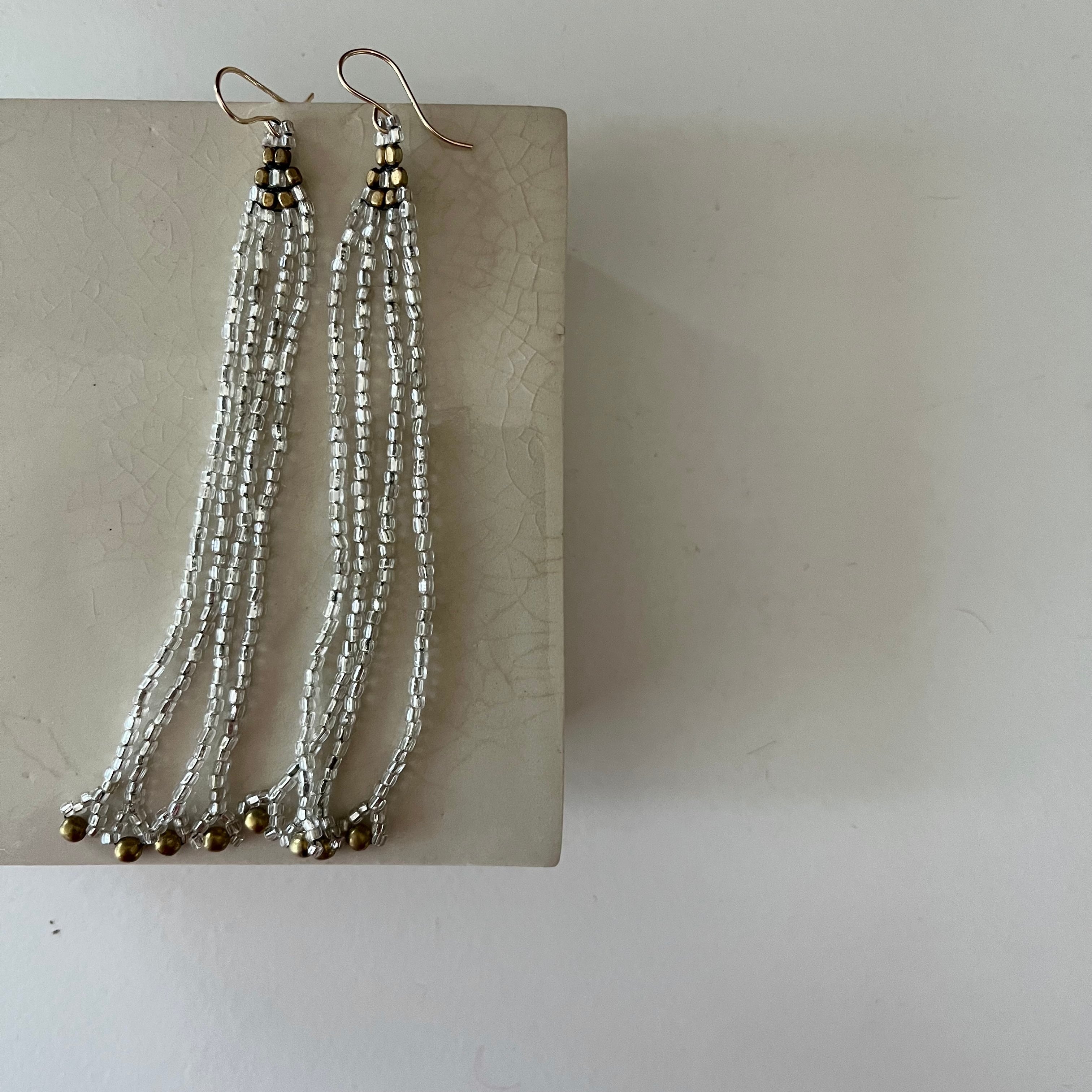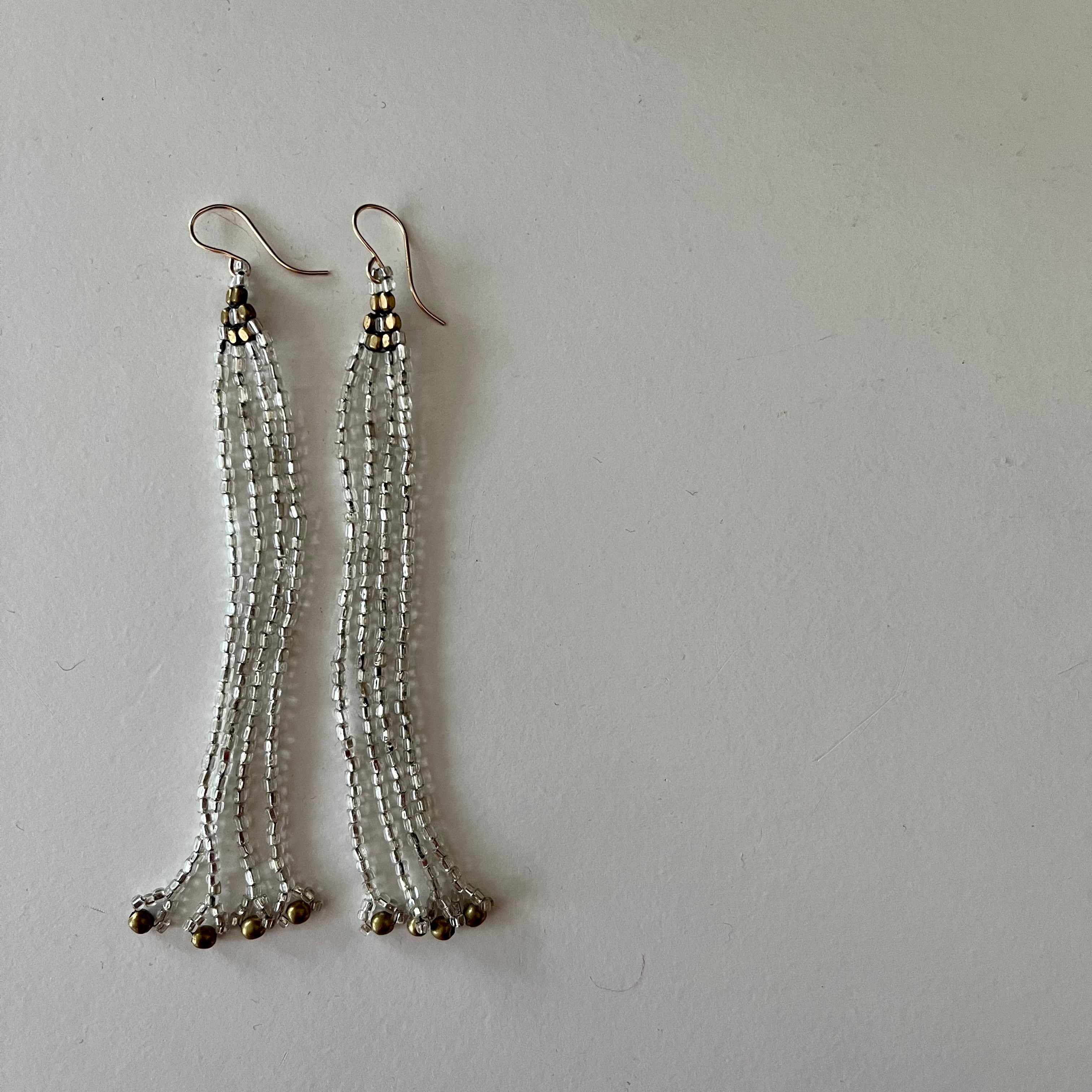 華奢なシルバーのビーズが流れるように落ちるピアスです。