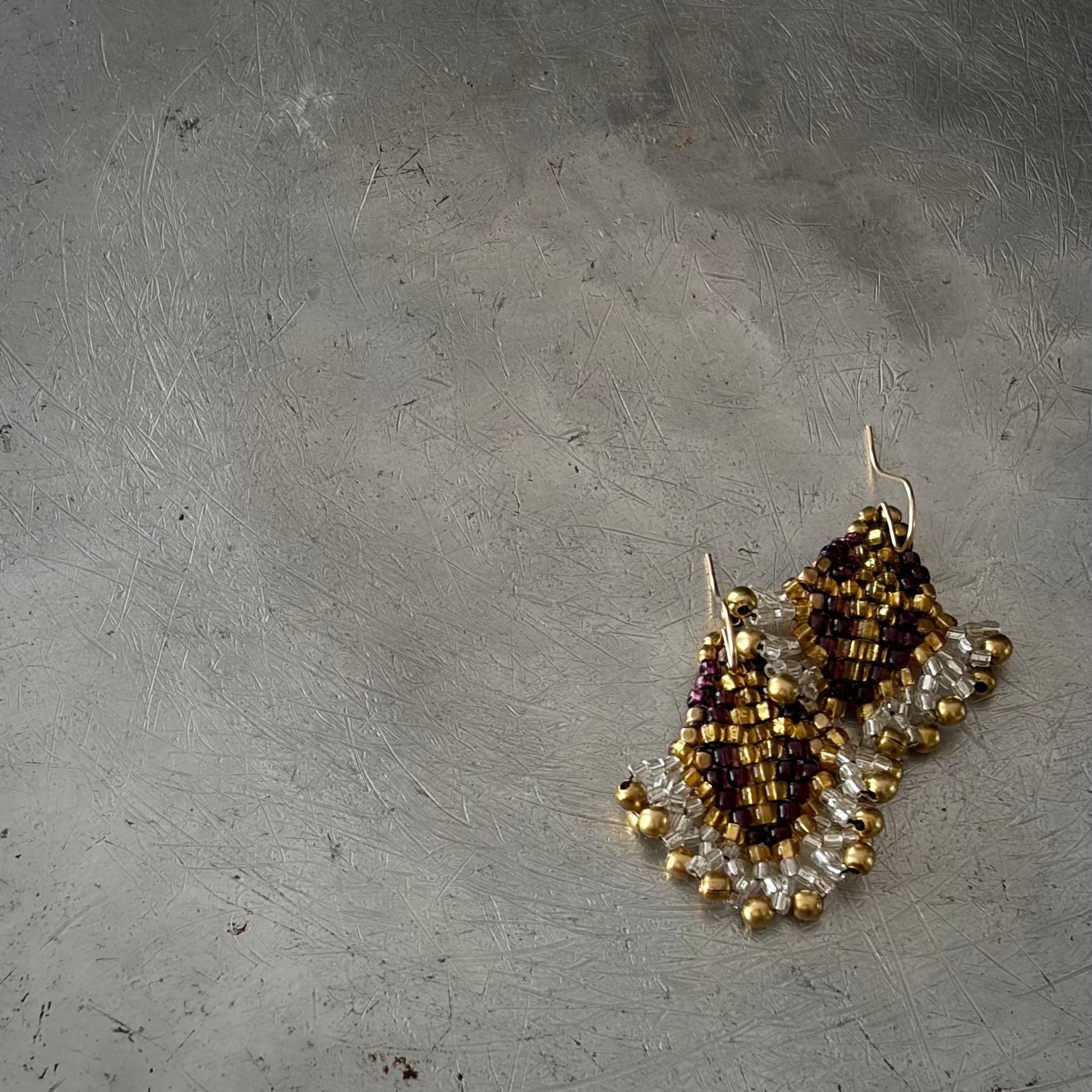 光が射すと美しく輝く深いパープルのビーズに