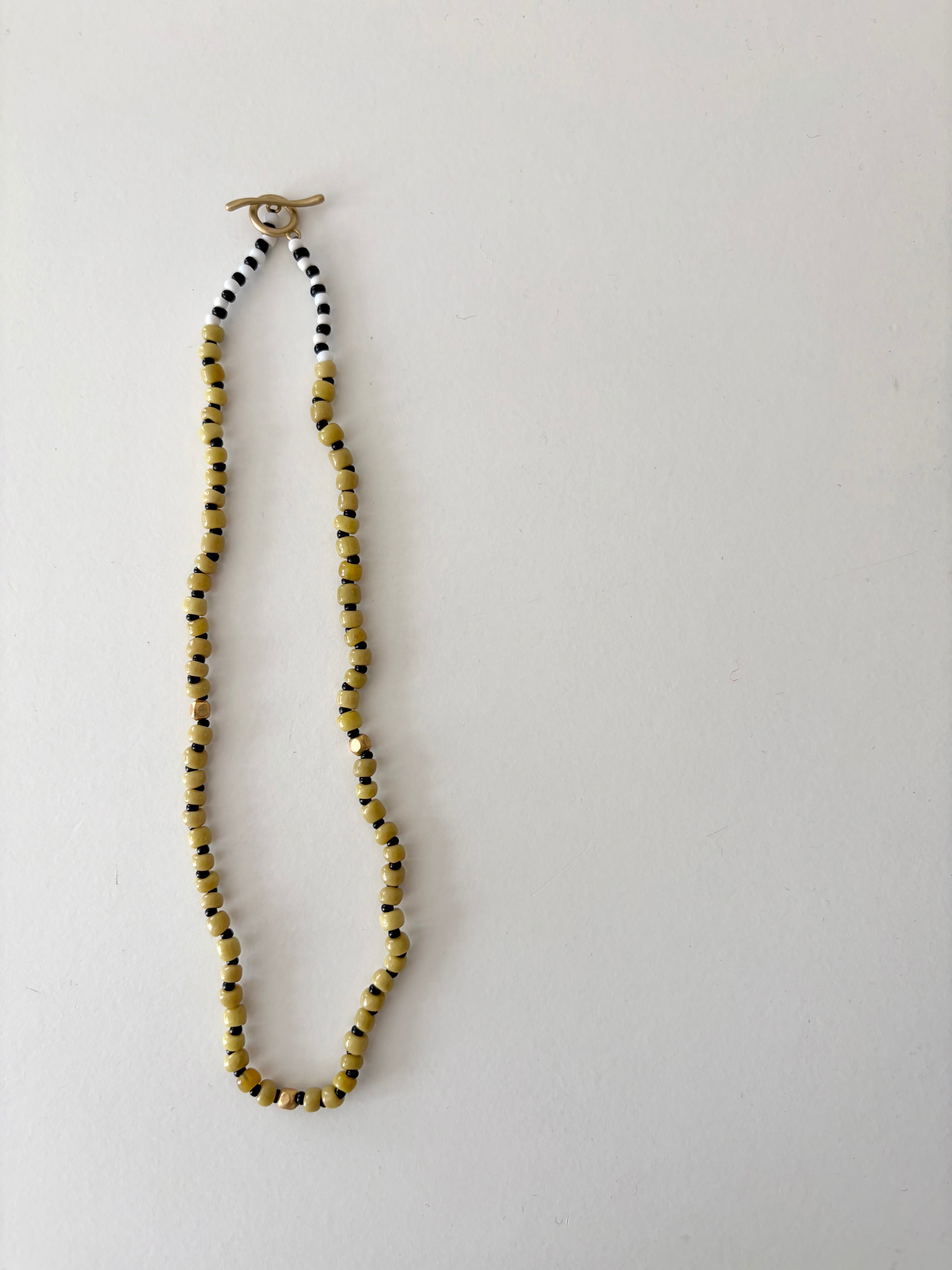 アンティークならではの柔らかで微妙な色合いが美しいイエロービーズのネックレスです。